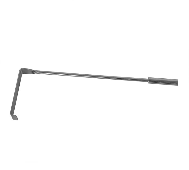 Roestvrij stalen pook. Perfect voor het bijeenharken van sintels zonder warmte te verliezen.